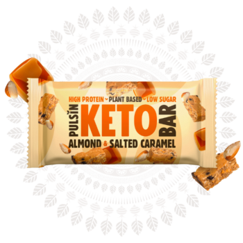 Pulsin Keto proteinska tablica z mandlji in slano karamelo, 50g