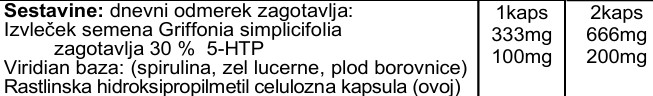 - Izvleček je standardiziran na vsebnost 5-HTP – zagotavlja enako potentno sesavo vsake kapsule.