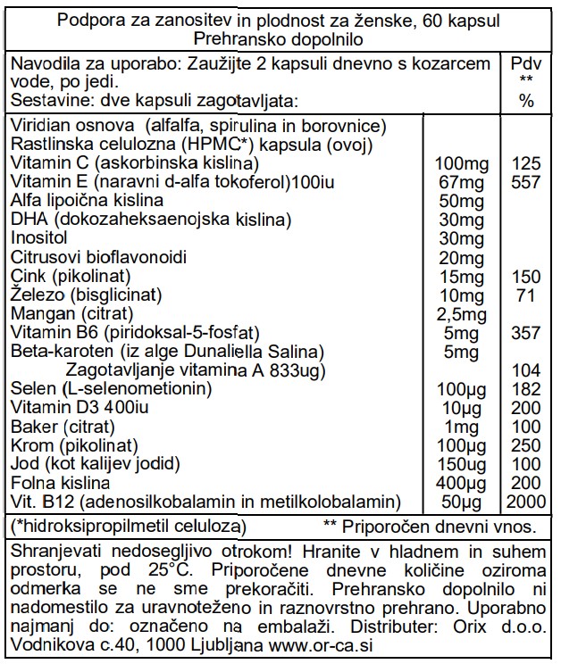 Podpora plodnosti za ženske, 60 kapsul – PRO-CONCEPTION FERTILITY FOR WOMEN VIRIDIAN